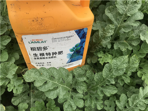 ? ? ? 生根肥:這個(gè)時(shí)間是西瓜剛剛移栽開(kāi)始緩苗,可使用根碧多+翠姆微生物菌劑進(jìn)行生根定根,可提供苗期所需的養(yǎng)分。