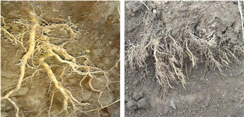 一個月以后的對比,根系茂盛,新生根多。而且每畝地只用了二十公斤化肥,用了兩次拉姆拉伯示麥生根劑,果農(nóng)看在眼,喜在心。所以,總結經(jīng)驗,過去的挫折,也是明天的經(jīng)驗。